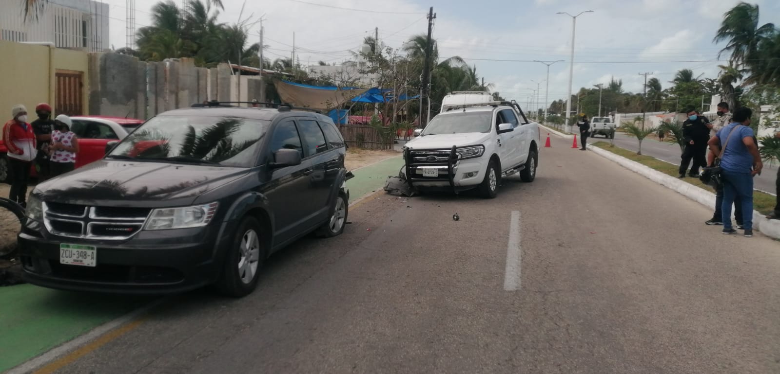 PROGRESO, Yucatán, miércoles 09/02/22.- Por circular distraído y mandando mensajes por celular el chofer de una patulla municipal chocó contra una camioneta estacionada, por el golpe avanzo y atropello a un abuelito que recolectaba botellas de plástico en la calle 128 con 130 en la avenida Líbano.