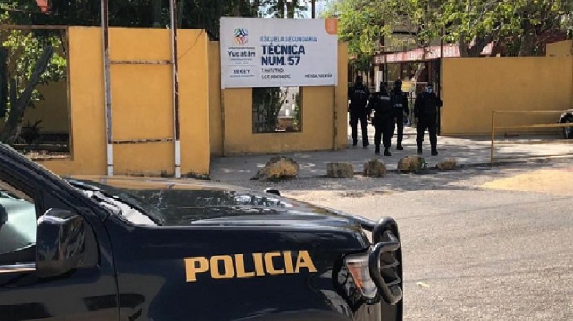 MÉRIDA, Yucatán, viernes 18/03/22.- Agentes de la Secretaría De Seguridad Pública (SSP) pararon ayer jueves una pelea entre dos jóvenes que se disputaban el amor de una estudiante en la puerta de la escuela secundaria técnica número 57 de la colonia El Roble.