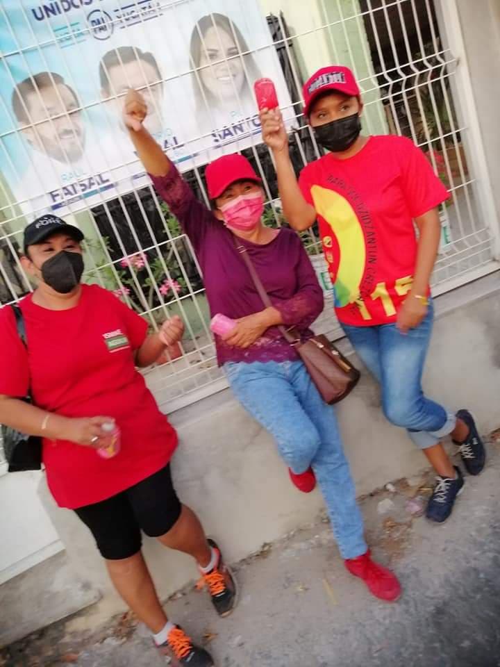 DZIDZANTÚN, Yucatán, jueves 29/04/21.- Simpatizantes del grupo de trabajo del alcalde Ismael Aguilar, ayer por la tarde se autoproclamaron ganadores y se mofaron frente una lona de Liborio Vidal, a quien el Tribunal Electoral del Poder Judicial de la Federación revocó su candidatura a diputado federal por el I Distrito de Valladolid.