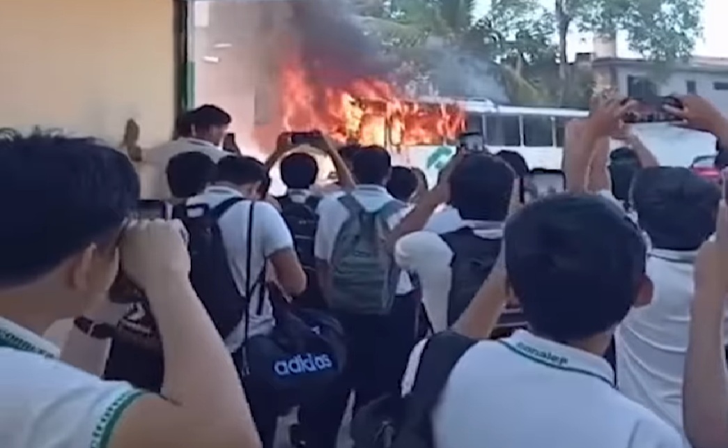 Alumnos de un Conalep de Villahermosa prenden fuego a un autobús: No les pagaron sus becas
