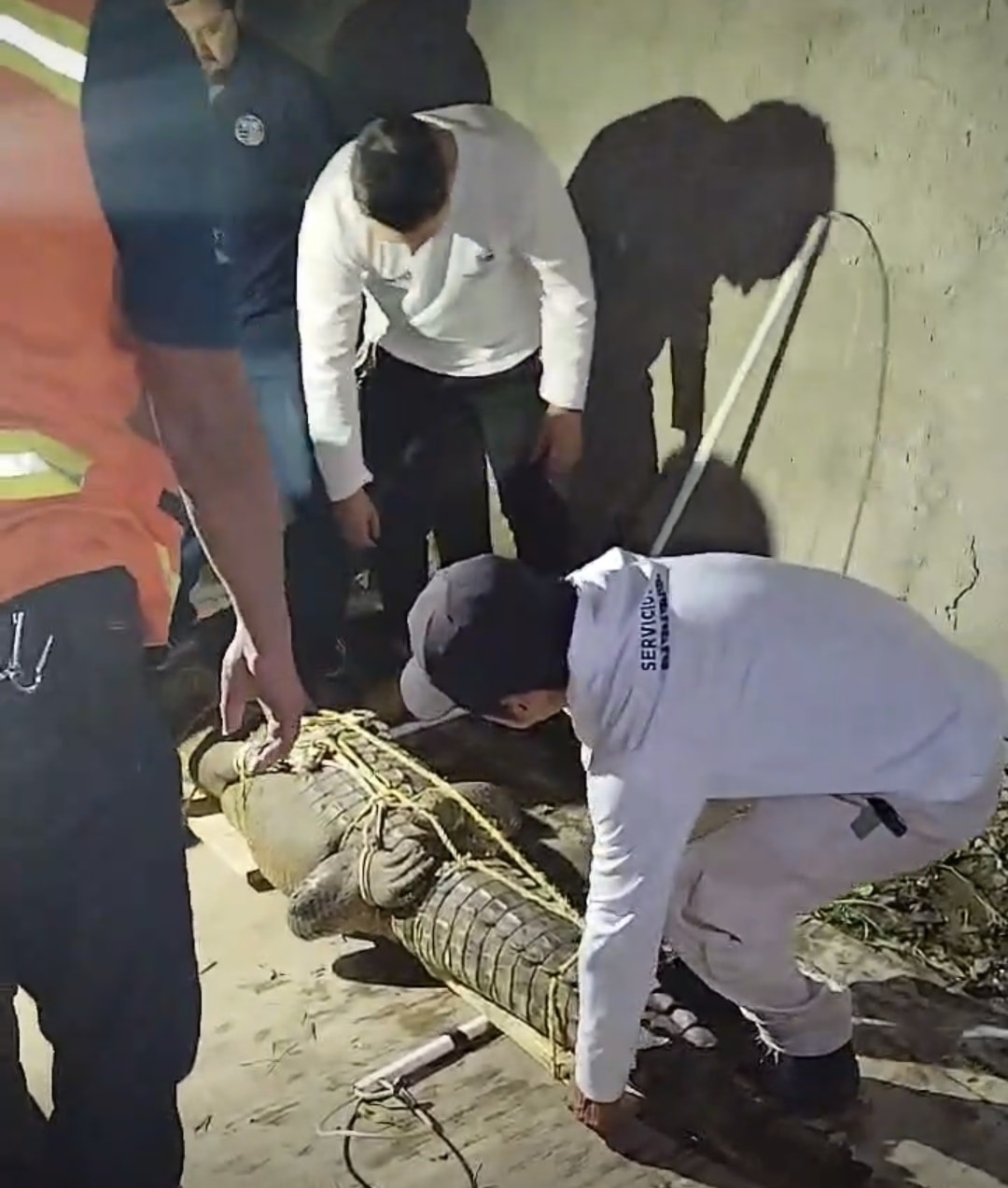 Atrapan en Progreso un enorme cocodrilo cerca del campo deportivo Víctor Cervera
