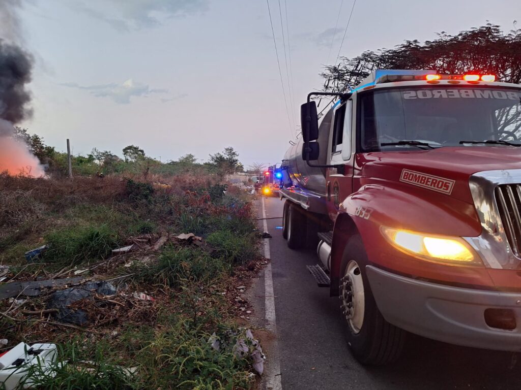 Vecinos llamaron a los numero de emergencia y pidieron el apoyo de bomberos porque un terreno lleno de maleza y basura ardía en llamas, y temian que el fuego se propagara por el lugar, en pocos minutos policías estatales, el cuerpo de emergencia y bomberos llegaron al sitio.