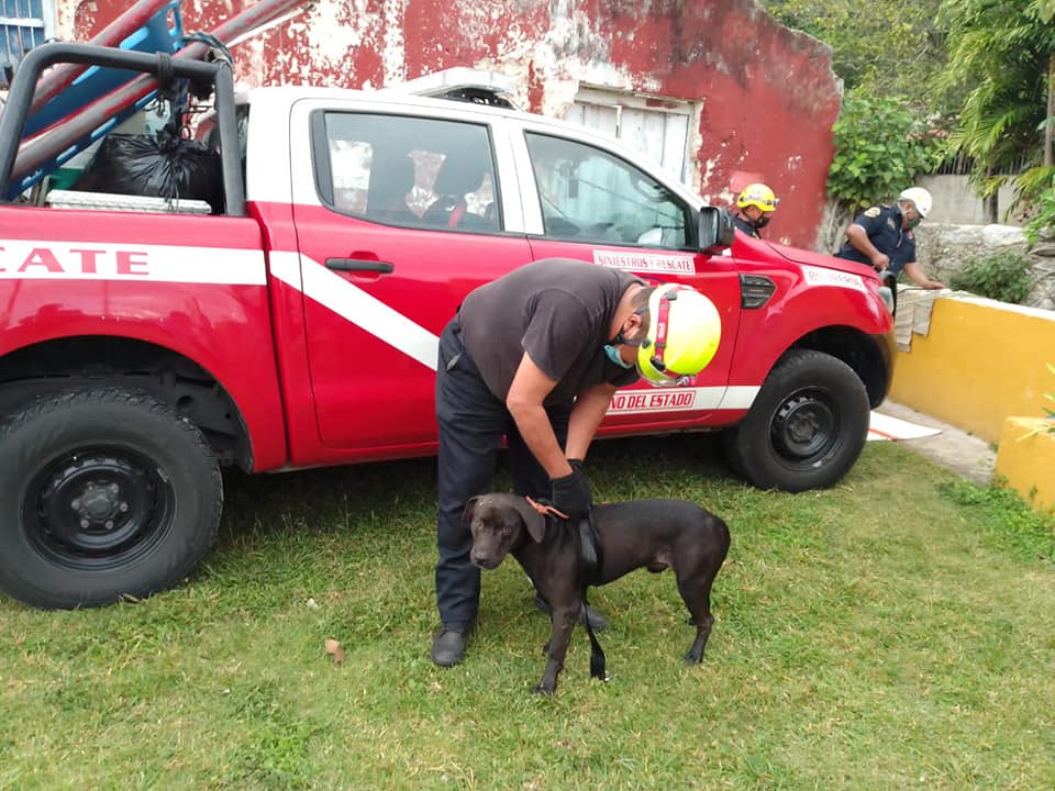 Bomberos de la SSP rescataron al Lobito, un perro que cayó en un cenote en Yaxcabá