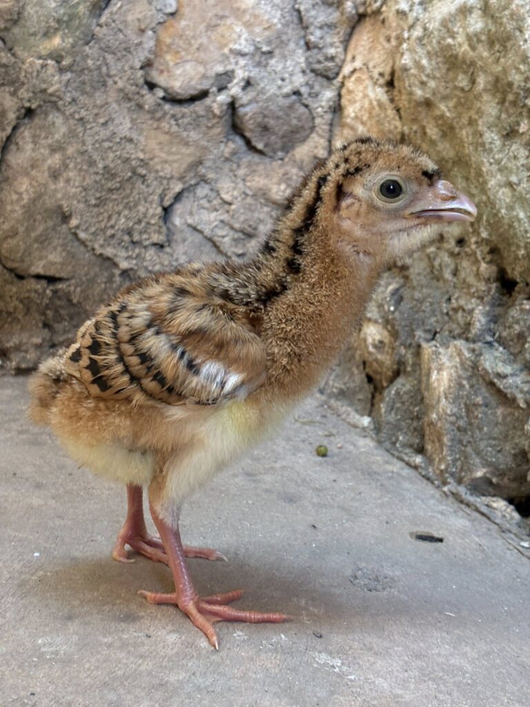 TIZIMÍN, Yucatán, lunes 20/04/2026.- Brota en el Parque Zoológico La Reina un ejemplar de hocofaisán (K’aambul), una especie de ave en peligro de extinción, la eclosión del huevo es un gran avance para la reproducción de esta especie en cautiverio.