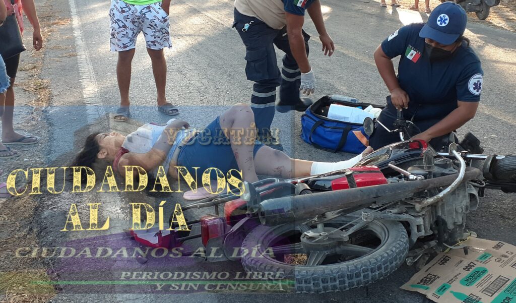 DZIDZANTÚN, Yucatán, miércoles 24/03/21.- Dos lesionados entre ellos una menor de edad, fue el saldo de un accidente entre dos motocicletas registrado este miércoles poco antes de las 5:00 de la tarde, sobre la calle 21 con cruce con la calle 4, frente a una escuela secundaria.