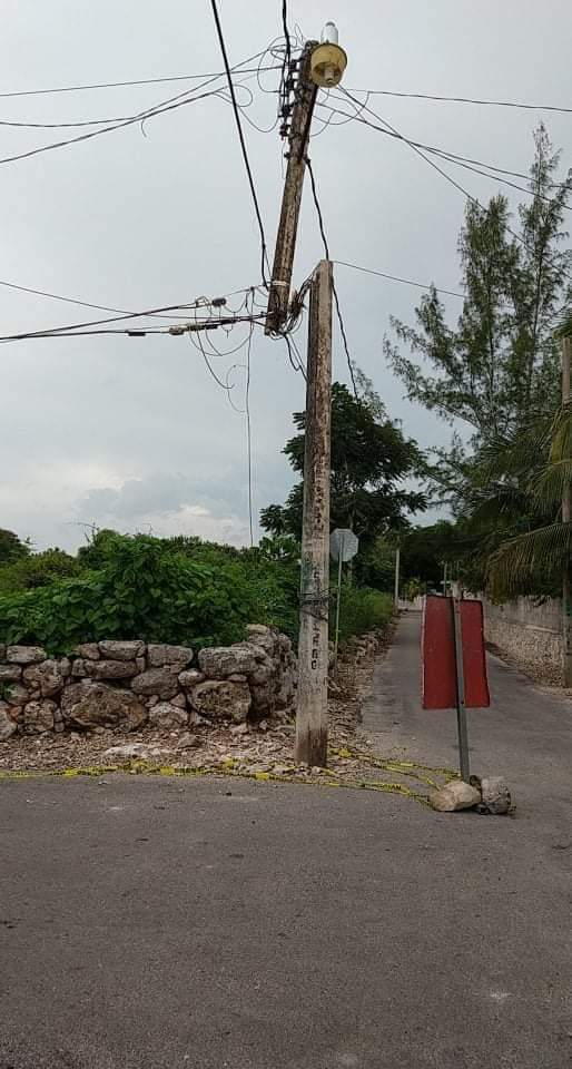 Tiene más de un año que se reportó a las autoridades encabezadas por May Vera, que un poste de luz, ubicado en la calle15 entre 22 y 24 estaba a punto de caer, ahora que cruzo la tormenta tropical Grace se quebró, pero sigue en las mismas condiciones poniendo en riesgo la vida de las personas del pueblo. Personal cercano al alcalde Miguel Ángel May Vera dijo que el edil mencionó que no cambiara nada ni gestionara nada ya que está a días de entregar la presidencia municipal, que esa será su primera chamba del nuevo alcalde Jesús Alberto Cool Ake, quien es una fichita y briago