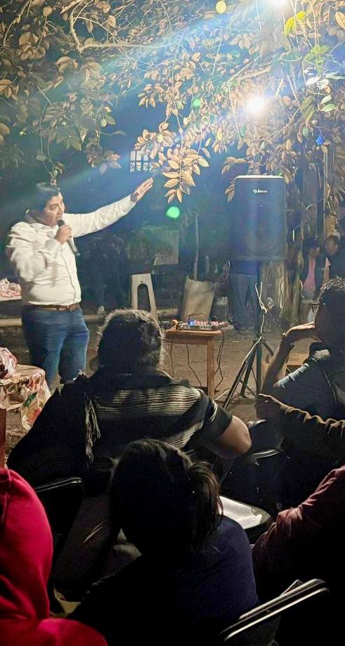 CANSAHCAB, Yucatán, jueves 12/02/2026.- Aunque en Yobaín ya nadie lo quiere como alcalde, por mentiroso y rata, ahora Alberto Cool quiere ser diputado de Morena, de modo que engañó a la gente de Cansahcab y les regaló carne de res para que asistieran a su reunión.
