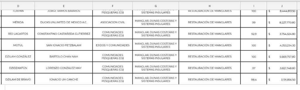 Entre los proyectos aprobados figuran Motul y Mérida, aunque no tiene mar y no son puertos, estas dos ciudades recibieron más de 12 millones del programa federal de reforestación de mangles.