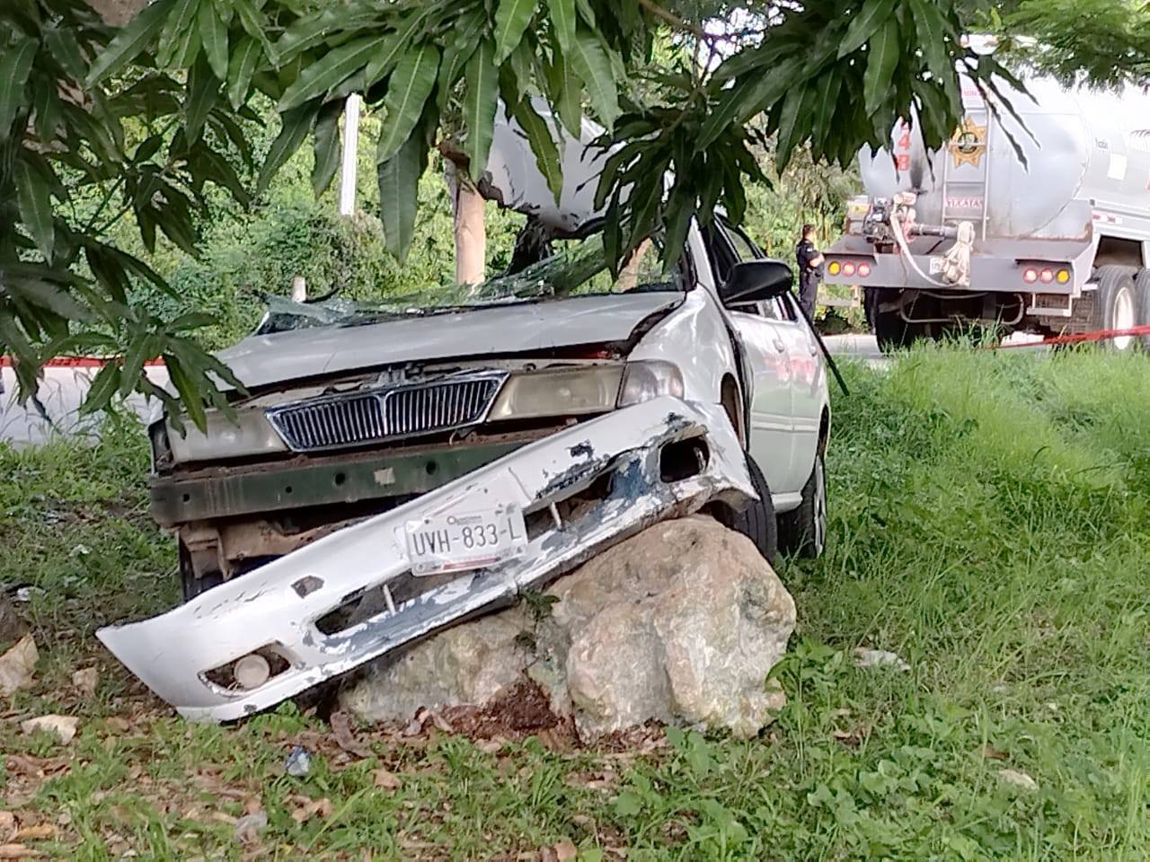 El joven circulaba de oriente a poniente utilizando un teléfono celular, en un dado momento se distrajo y chocó contra una camioneta Pick up, que estaba estacionada y descompuesta, debido al impacto el vehículo Nissan salió proyectado unos 50 metros y se estrelló contra dos enormes piedras.