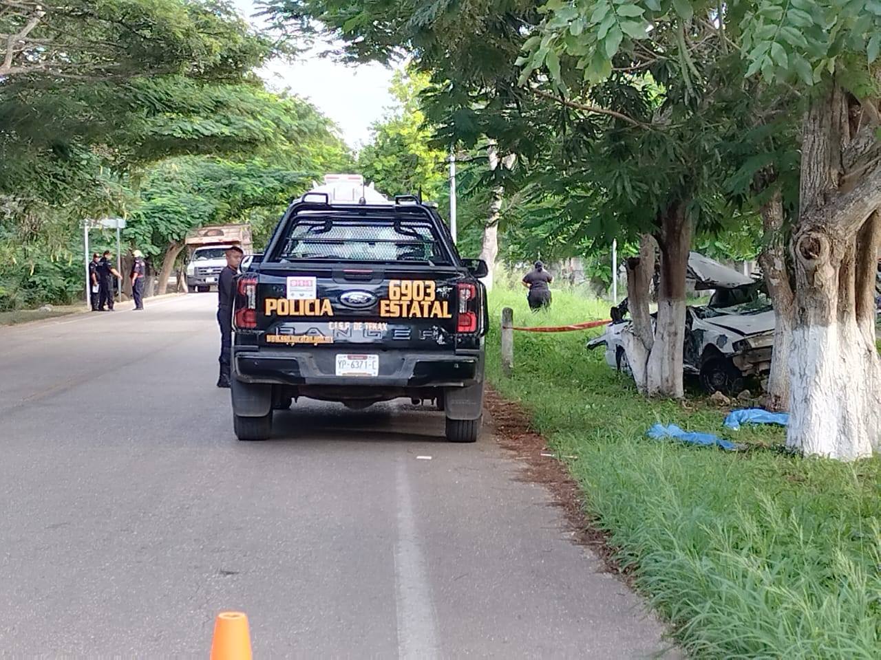 TEKAX, Yucatán, jueves 30/10/2025.- Cuatro personas resultaron lesionadas de consideración, luego que el joven Irving A., de 29 años, originario de Chiapas, la tarde de ayer miércoles chocó un automóvil contra una camioneta estacionada en la salida hacia Ticum.
