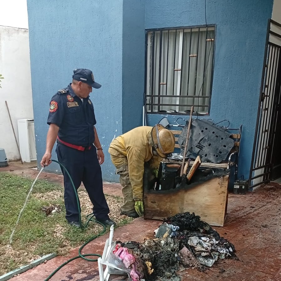 Al lugar llegaron policías estatales y bomberos de la misma corporación quienes apagaron el fuego para evitar que se propagara por toda la casa, mientras los primeros abanderaron el área para evitar otro accidente, por fortuna no hubo lesionados.