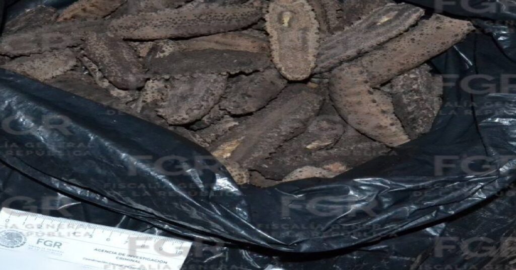 Policías de la SSP en un retén instalado sobre la carretera Dzilam Gonzales detuvieron al furtivo cuando trasportaba más de 50 kilos de pepino de mar ya procesado, el kilogramo de pepino de mar sancochado o cocido supera los 1,500 pesos, en el mercado negro ya seco llegan alcanzar un precio hasta de 3,500 dólares, es decir más de 62,720 pesos mexicanos.
