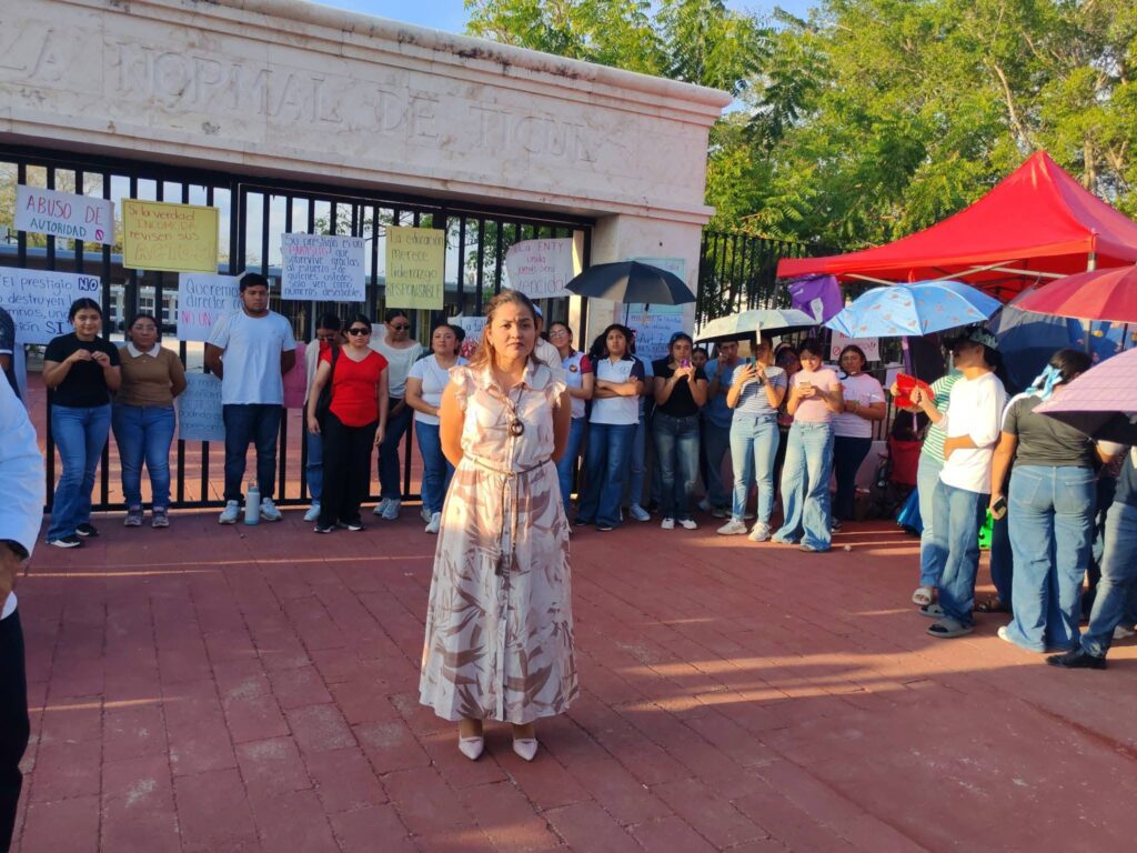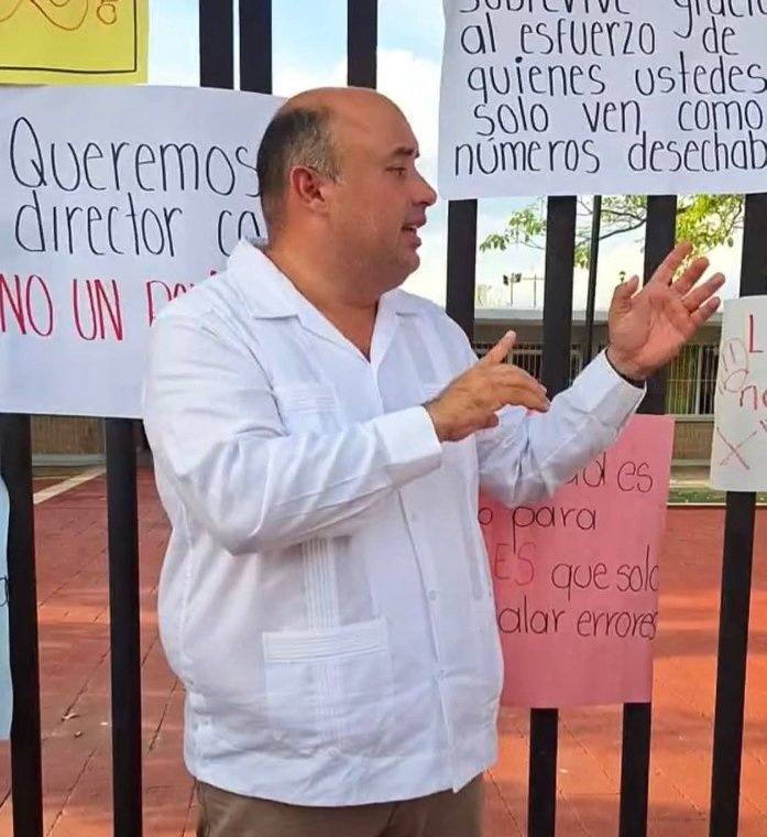 TICUL, Yucatán, jueves 23/04/2026.- Antes la presión y el bloqueo de alumnos normalistas, y antes de pasar la vergüenza de ser destituido por incompetente, Eliseo Galera Mata renunció como director de la Escuela Normal de Ticul, su lugar lo ocupara Maricruz Peralta Santos.