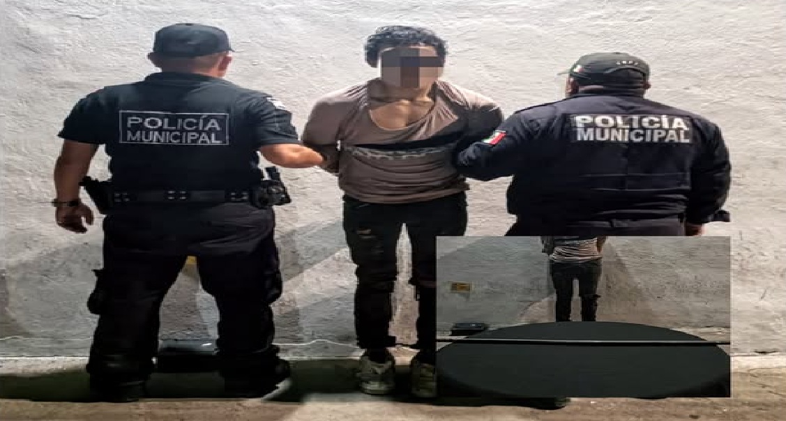 PROGRESO, Yucatán, miércoles 08/10/2025.- Policías municipales este miércoles detuvieron a Luis N. de 27 años de edad por causar destrozos en una casa en Flamboyanes, pero también ayudaron a un recolecto de plásticos que se cayó al suelo y aporreo la cabeza contra el duro pavimento..