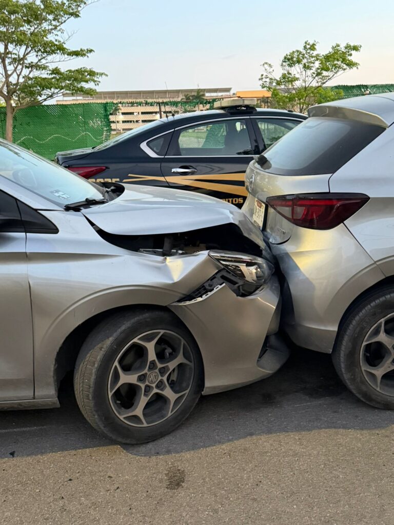 En su huida este sujeto al ver que el dueño del vehículo que chocó se puso en la parte trasera para evitar que se escapara, este sujeto le dio para adelante chocando de nuevo al vehículo y se llevó de corbata a otros dos automóviles estacionados.