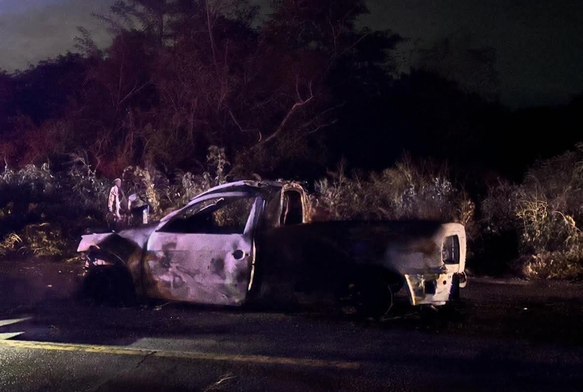 El conductor de la camioneta que esta en calidad de desconocido minutos después de las 18:30 horas circulaba de oriente a poniente y a exceso de velocidad cuando chocó por alcance contra la parte trasera de un volquete, debido al fuerte choque su camioneta se incendió.