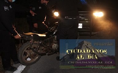 DZIDZANTÚN, Yucatán, domingo 21/03/21.- Esta noche poco antes de las 16:00 horas en completo estado de ebriedad, debajo de su motocicleta Kazuki 150cc. y fuera de la carretera acabo Manuel Cab (a) “El Purrum” después que la luz de un automóvil lo encandilo cuando circulaba sobre la carreta Dzidzantún- Yobain.