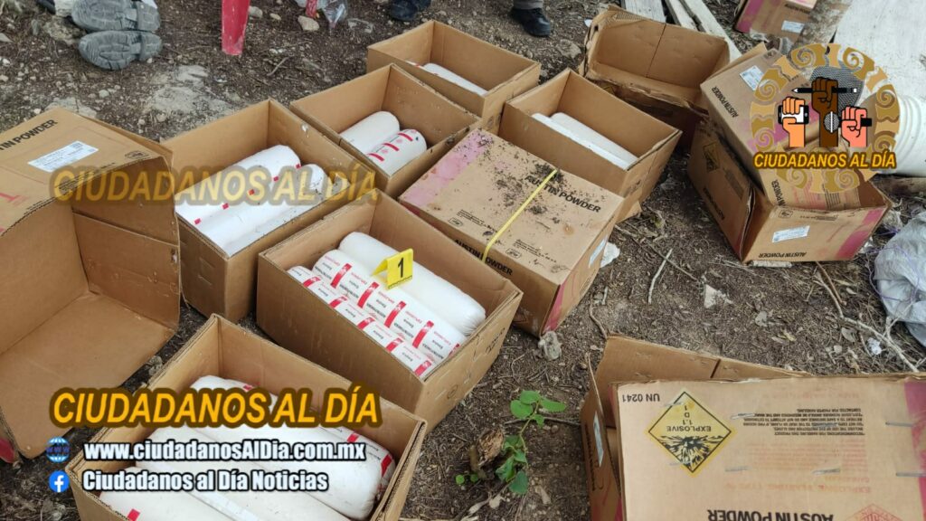 La policía federal ministerial al llegar al lugar no encontró a ninguna persona, pero si maquinaria y explosivos, por lo que se procedió, se aseguró amiento el predio, por actividades de extracción y comercialización de tierra forestal de manera ilícita,