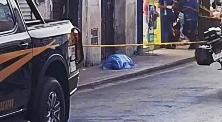 MÉRIDA, Yucatán, martes 14/10/2025.- Un indigente que caminaba la tarde de ayer lunes murió repentinamente luego que se desplomo en la calle 67 entre 58 y 60 del centro de Mérida.