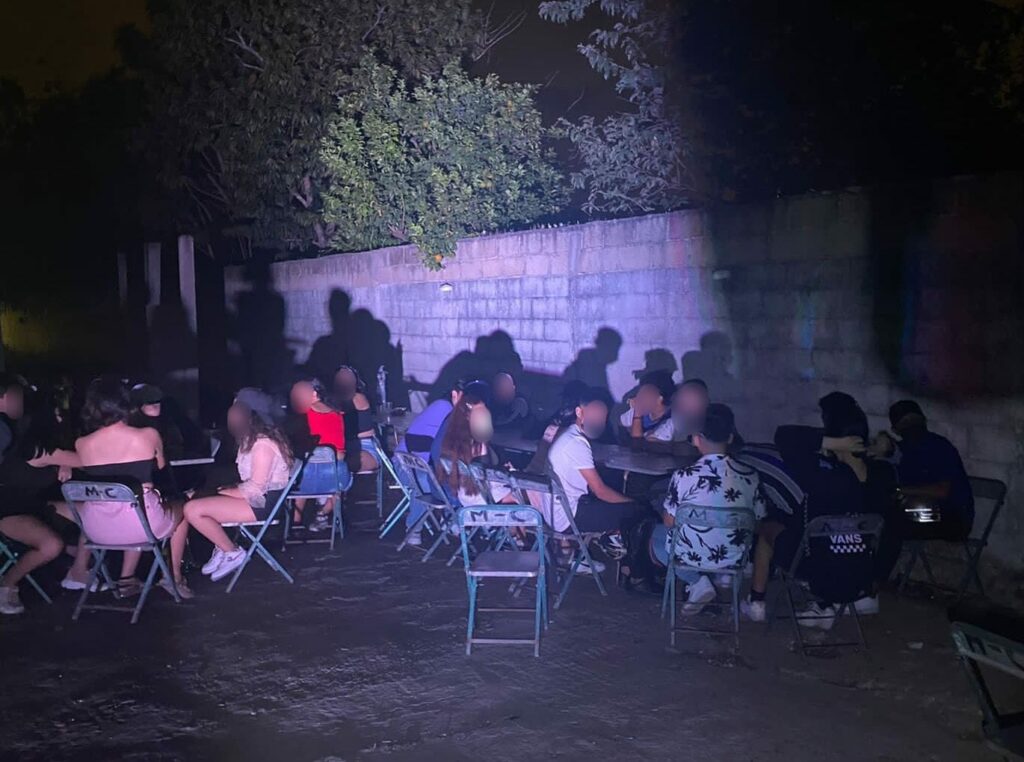 KANASÍN, Yucatán, lunes 17/01/22.- Personal de Salubridad, agentes de la Policía Municipal y de la Secretaría de Seguridad Pública (SSP), les cayeron el sábado pasado por la noche, a mas de 60 personas entre ellos al menos 30 memores en una fiesta clandestina, detuvieron a los dos organizadores y hasta los payasos.