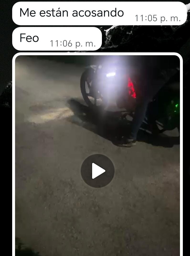 La joven después que se quitó de la escuela Normal donde estudia para maestra un sujeto a bordo de una motocicleta la comenzó a seguir, la interceptó en un tramo oscuro y solitario, le dijo que ya tiene investigado y la conocía, luego le propuso cosas indecorosas.