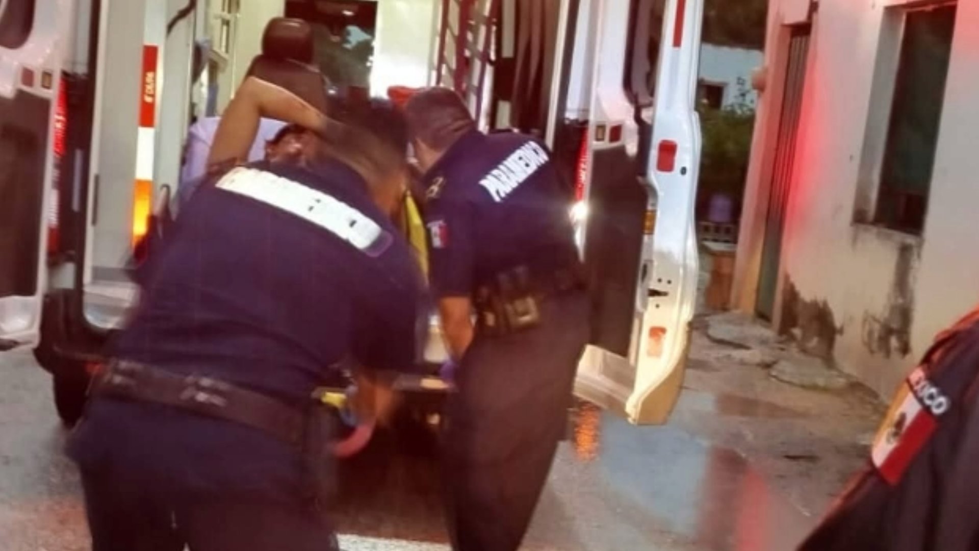 Paramédicos de la SSP auxilia a un joven que se cortó el brazo con un espejo en Dzidzantún.