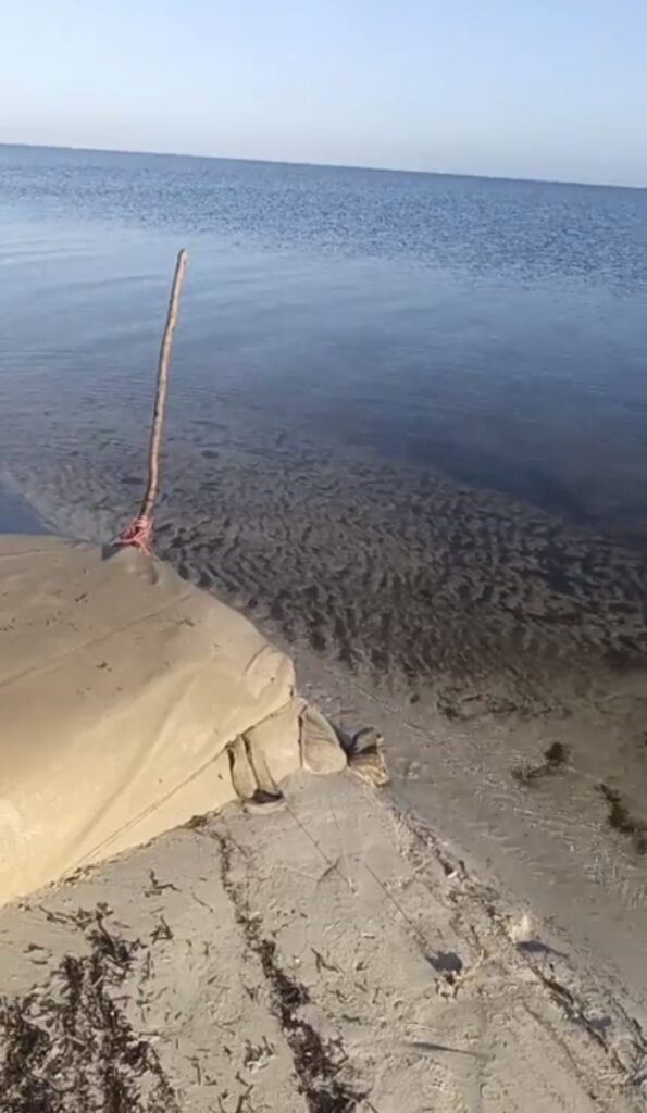 Una ciudadana a través de sus redes sociales dio a conocer el daño que se está causando a la zona de playa entre Playa Marmota y el campamento Porvenir, franja de línea de costa que están siendo cercadas con bolsas de material que abarcan arenales y varios metros dentro del mar.
