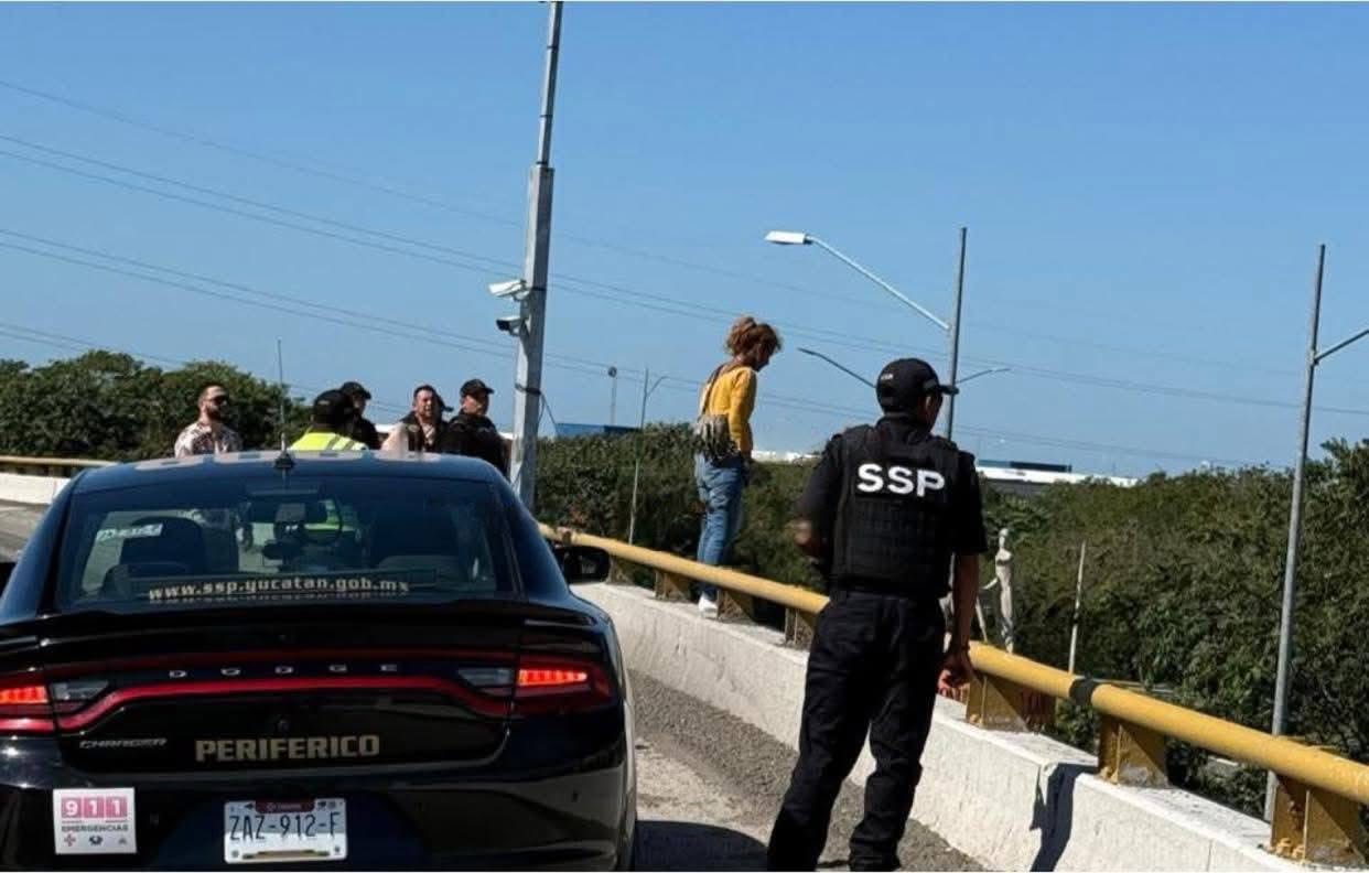 Conductores que circulaban por el lugar la tarde del domingo pasado llamaron a los números de emergencia al ver que una joven intentaba tirarse desde lo alto de un puente en el Periférico Sur de Mérida, de modo que hasta el lugar llegaron agentes de la SSP.