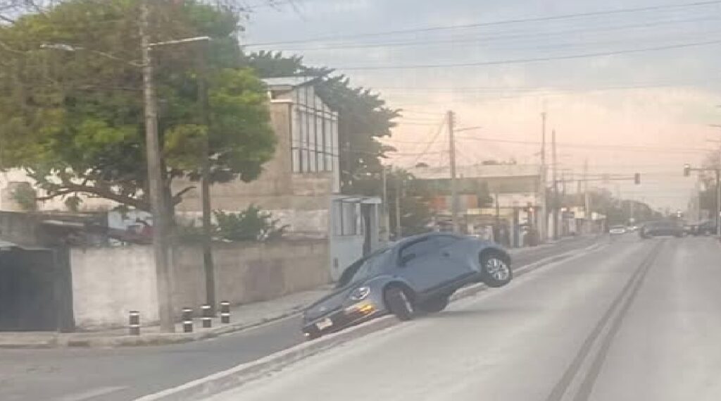 Según información policiaca un conductor de la tercera edad circulaba sobre la calle 39 al llegar a un semáforo siguió las instrucciones de un GPS y giró sobre la calle 18 “un carril exclusivo del transporte público Ie-Tram”, de modo quer metros mas adelante cayó en un desnivel.
