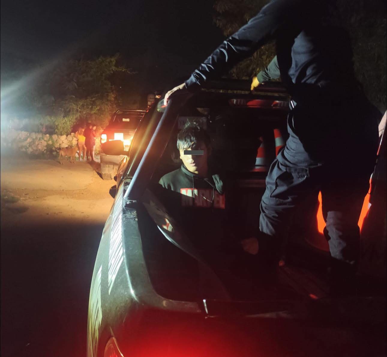 UMÁN, Yucatán, viernes 10/10/2025.- La rata de dos patas Ángel R.B.L. lo detuvieron la noche de ayer jueves cuando estaba guardado dentro de un tinaco, luego que intentó robar en una casa ubicada en la calle 5 con 36, en Villas de Umán, propiedad de C. Balam de 51 años de edad.