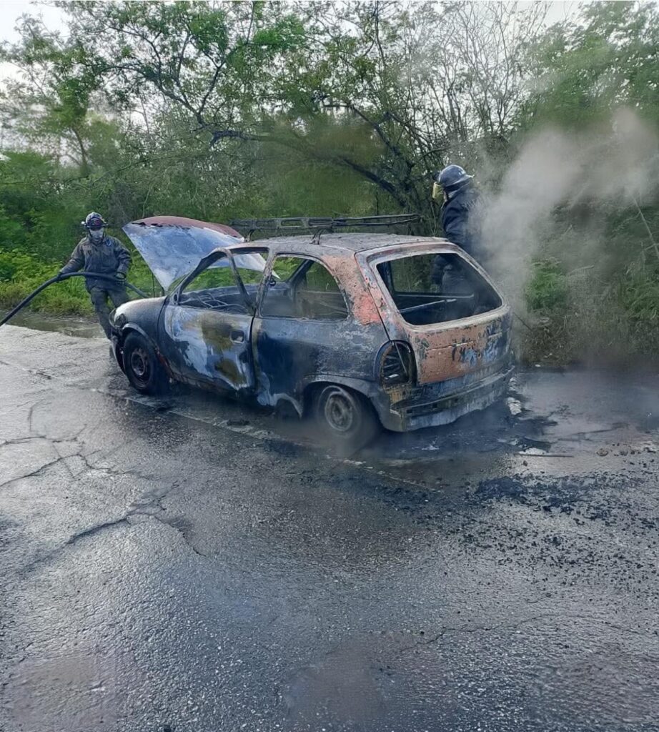 Los ocupantes del Chevy se bajaron y pusieron a salvo, mientras el fuego en cuestión de minutos consumió el compacto, luego pidieron apoyo de los cuerpos de emergencia a través de los numero 911, minutos después bomberos de la SSP llegaron al lugar y apagaron el incendio.