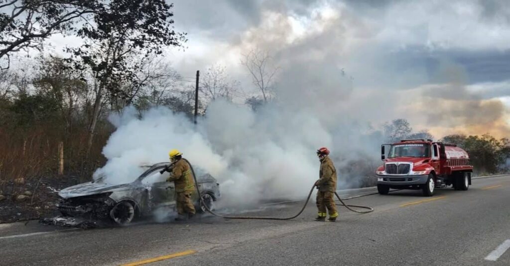 UN VEHÍCULO SE INCENDIA EN LA CARRETERA FEDERAL MUNA–UMÁN
