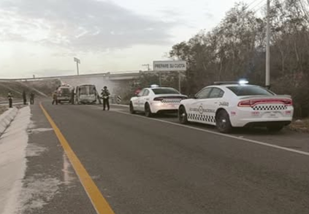Policías municipales y de la Secretaria De Seguridad Pública (SSP) abanderaron el área para evitar otro accidente mientras bomberos de la SSP apagaron el fuego y sofocaron el incendio, no se reportaron lesionados.