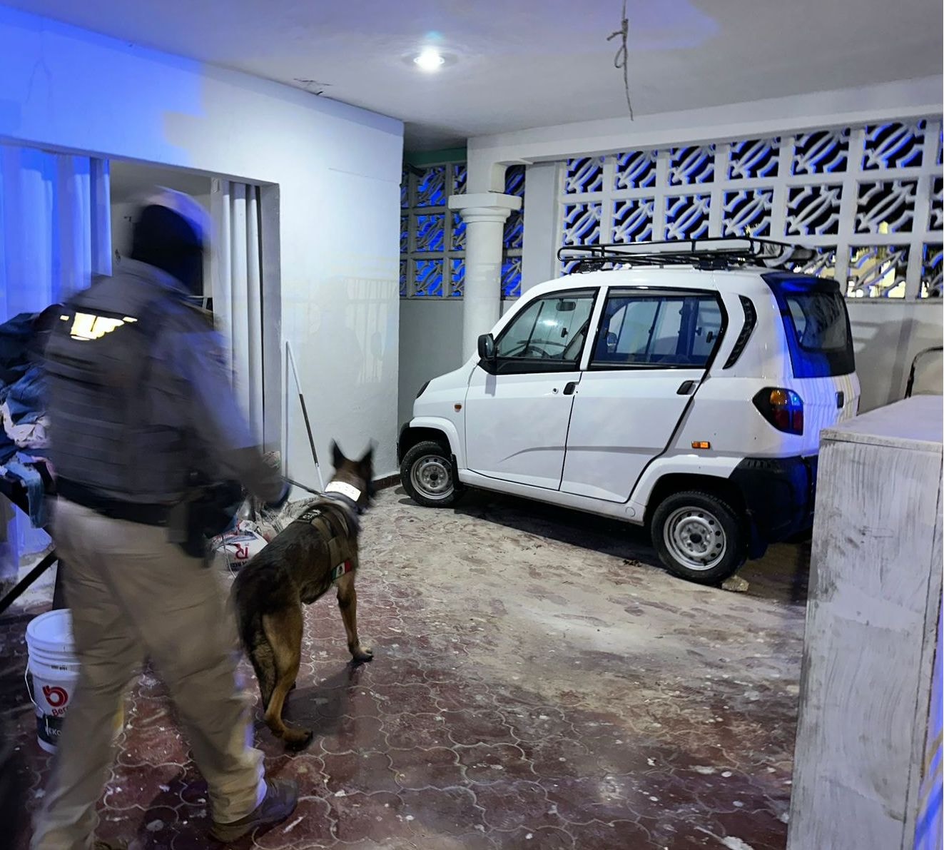 El operativo realizado por la Fiscalía General del Estado (FGE) estuvo coordinado con la Secretaría de Seguridad Pública (SSP), Guardia Nacional (GN), Ejército, Marina, y Unidad Canina de la SSP.