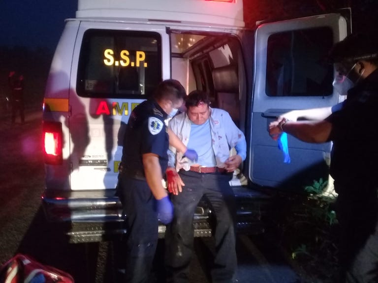 Al lugar llegaron agentes de la policía municipal y paramédicos de la ambulancia 21-0, quienes atendieron al chofer del Aveo, luego fue trasladado a la clínica T-1 del IMSS en Mérida para que recibiera atención médica oportuna por los golpes que sufrió.