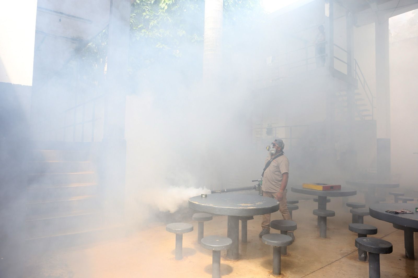 Como parte de los protocolos de prevención y sanitización de áreas públicas para mantener condiciones sanitarias seguras y eliminar la presencia del mosco que causa el dengue, se hizo una brigada de fumigación en las instalaciones penitenciarias ubicadas al sur de la ciudad de Mérida.