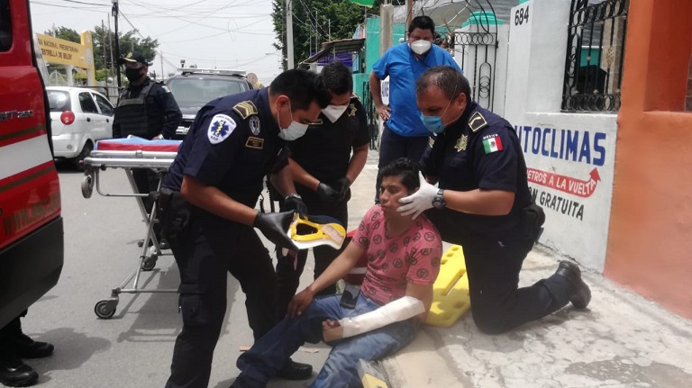 TRABAJADOR DE IZZI CAE DE UNA ESCALERA Y SE ROMPIÓ UN BRAZO EN EL CENTRO DE MÉRIDA