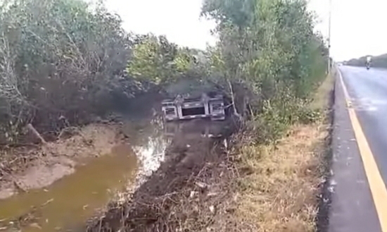 Según datos recabados el chofer de una pipa circulaba de Sur a Norte sobre la carretera Mérida- Progreso, cuando dio el clásico pestañazo a pocos metros antes de entrar al puerto, se orilló, por lo que perdió el control de la pesada unidad, choco y derribo un poste, para luego irse dentro de la ciénaga-