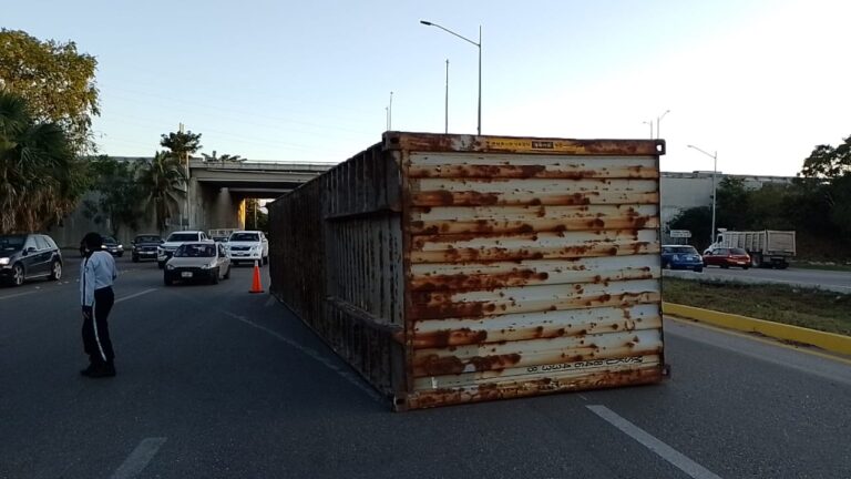 Según datos recabados el tráilero Miguel Ángel circulaba a exceso de velocidad sobre el añillo periférico, al tomar la lateral e intentar ingresar a la carretera a Progreso, dio un volantazo y se le desprendió la caja del tráiler, por fortuna no aplasto a ningún vehículo que circulaba por el lugar.