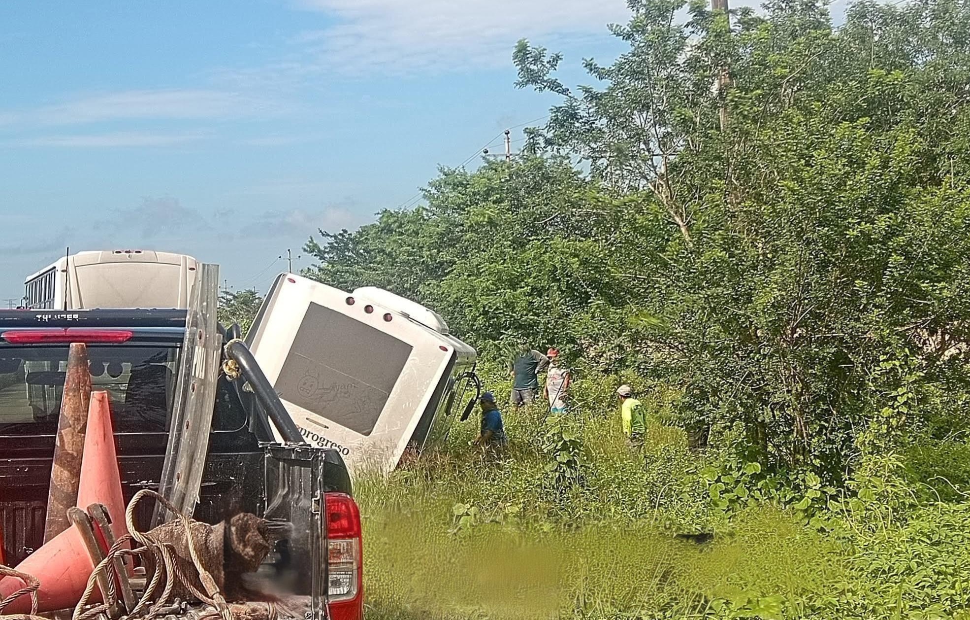 Un autobús de personal sale de la carreta en la vía Temax – Dzilam González
