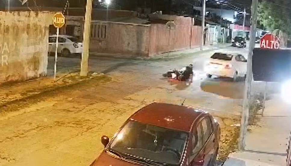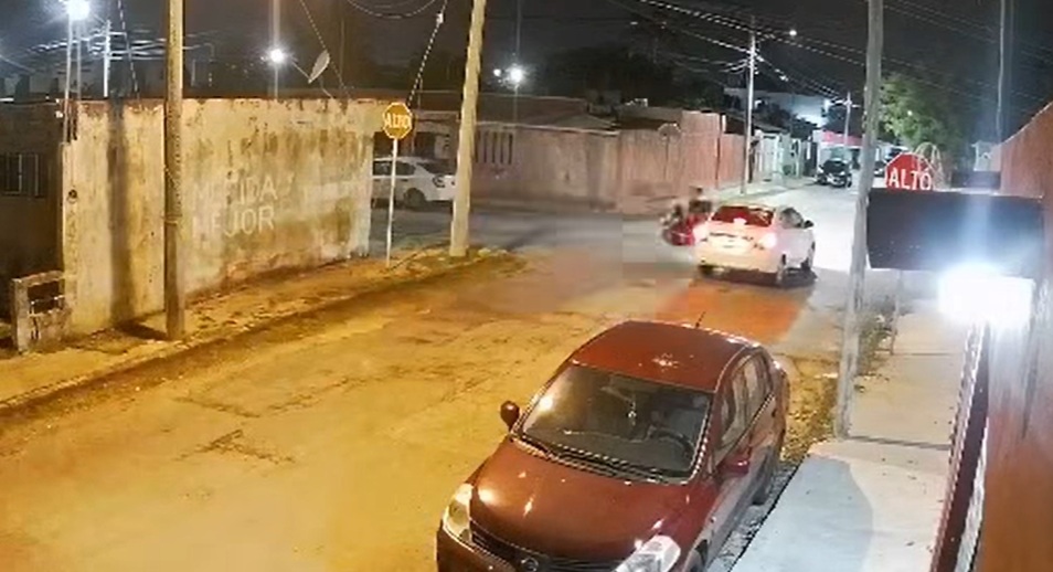 MÉRIDA, Yucatán, lunes 13/04/2026.- El conductor de un vehículo Dodge Attitude blanco de vidrios polarizados, la noche de ayer domingo se voló un alto en la calle 20 con 7, y causo que un motociclista se estrellara, luego se dio a la fuga, de mod que pidieron ayuda para localizar al responsable.