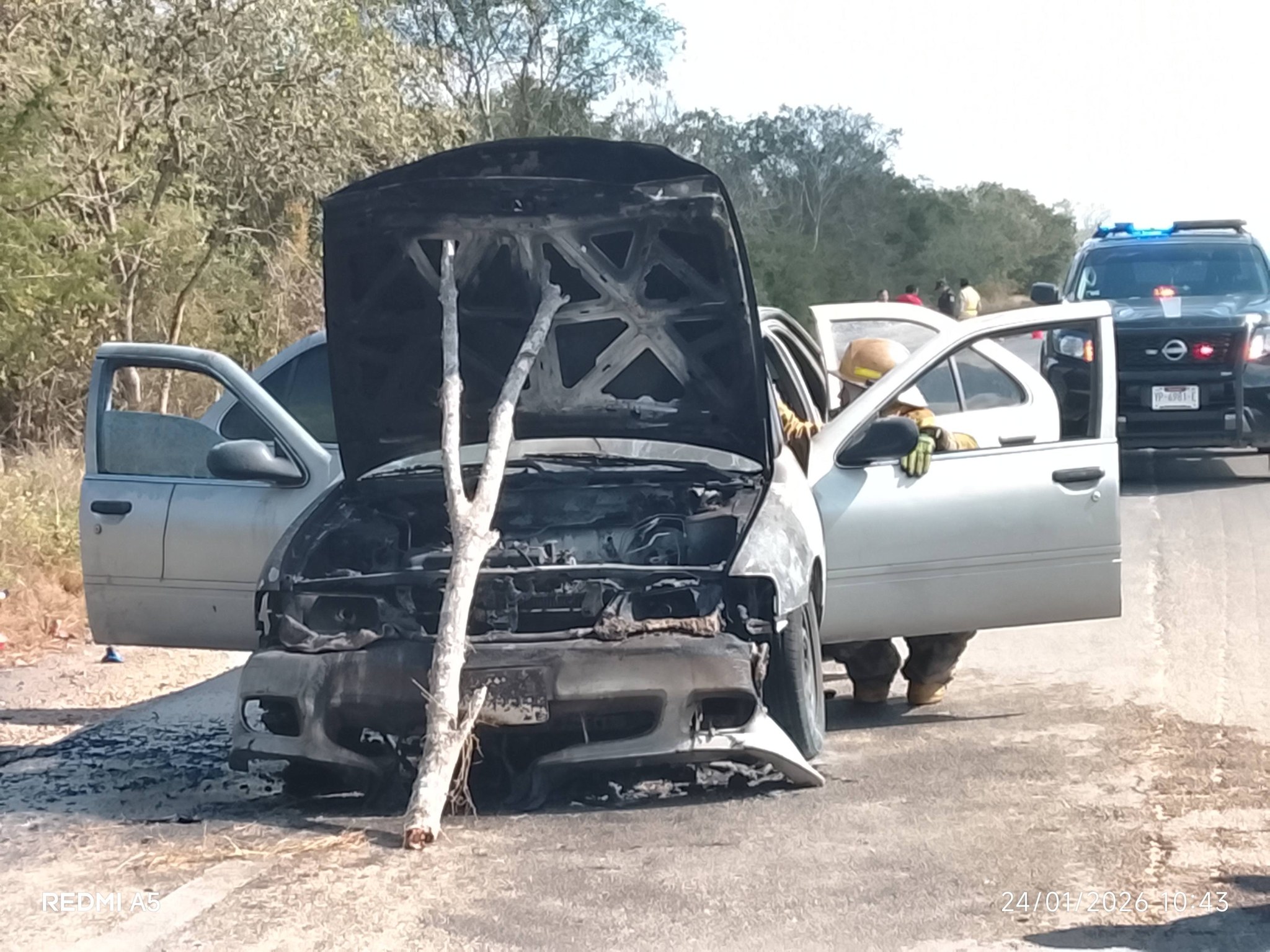 Bomberos de la SSP llegaron al lugar y enfriaron el vehículo para evitar otro incendio, mientras policías municipales y de la Secretaría De Seguridad Pública (SSP) acordonaron el área para evitar otro accidente, minutos más tarde personal de la Guardia Nacional (GN) tomo conocimiento del accidente.