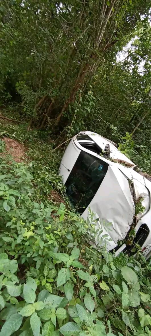 TEMOZÓN, Yucatán, jueves 13/11/2025.- El conductor de un automóvil Mazda resulto lesionado ayer miércoles luego que circulaba a exceso de velocidad, salió de la carpeta asfáltica y volcó al tomar una curva del “Diablo” en el tramo carretero Santa Rita–Temozón.