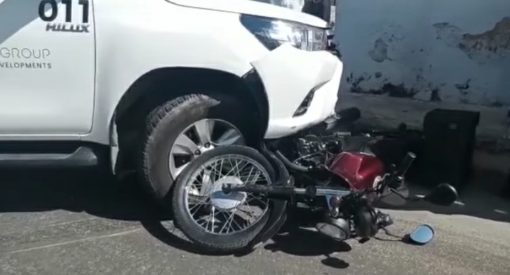 Un chofer choca arrastra más de 10 metros y lesiona a un motociclista en Baca