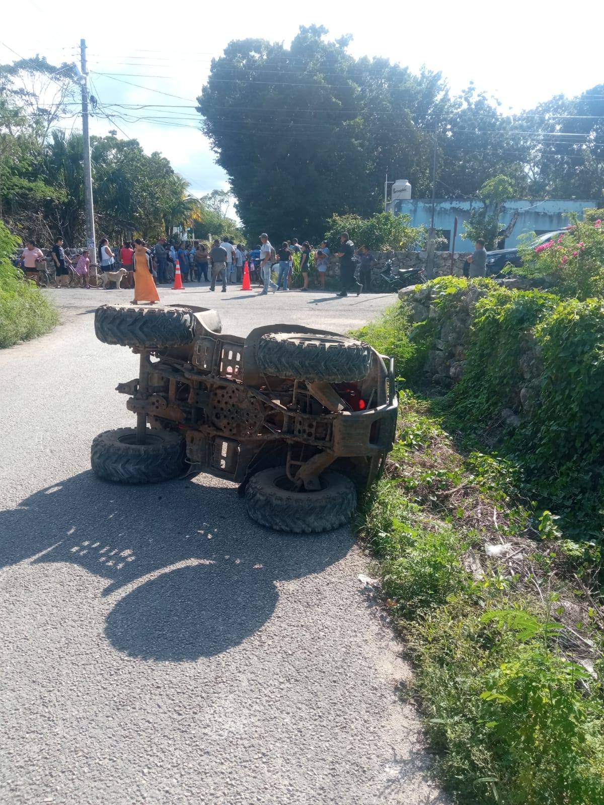 Mauricio Canul circulaba con preferencia de paso sobre la calle 8 a bordo de una cuatrimoto, cuando José Martín Ek, oriundo de Muxupip, se voló un alto y lo chocó violentamente con un vehículo Chevrolet, con placas de circulación USK-261-M.