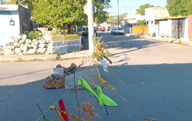 MÉRIDA, Yucatán, lunes 14/11/22.- Ante la nula reacción de la Comisión Federal De Electricidad (CFE) vecinos de colonia Mulsay cerraron desde el pasado sábado por la mañana el acceso a la calle 67-A con 67-B ante un poste de concreto a punto de desplomarse.